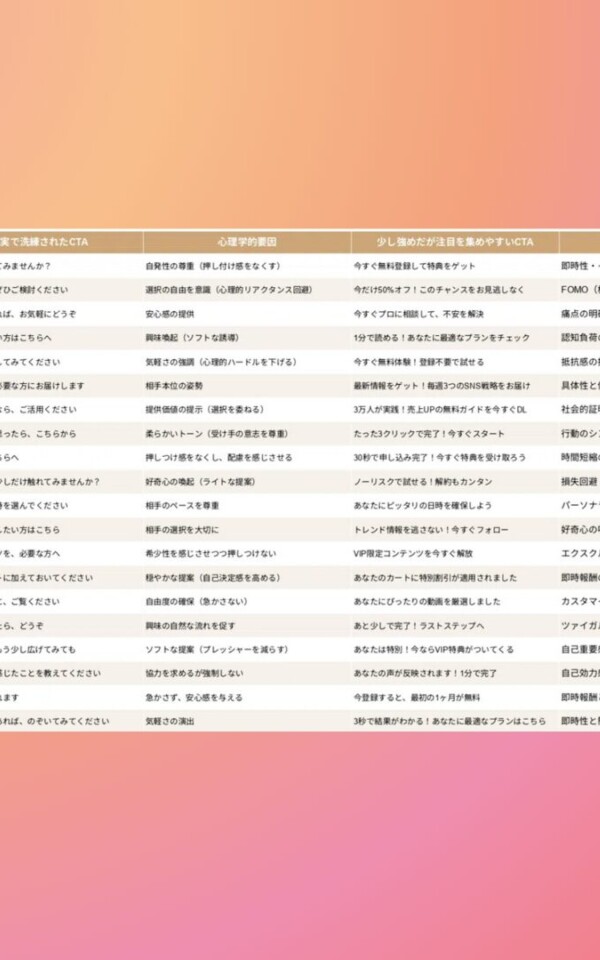 CTAって知ってますか? Call to Actionの略称です。 「登録してね!」とか「お店に来てね!」みたいな見ている人に、何かしらのアクションを...