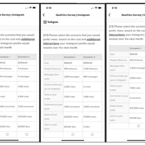 Instagramが選ばれたユーザーに対して、アプリ内でのエンゲージメントに課金するオプションに関するアンケートを実施しています。これは、公式を通して...