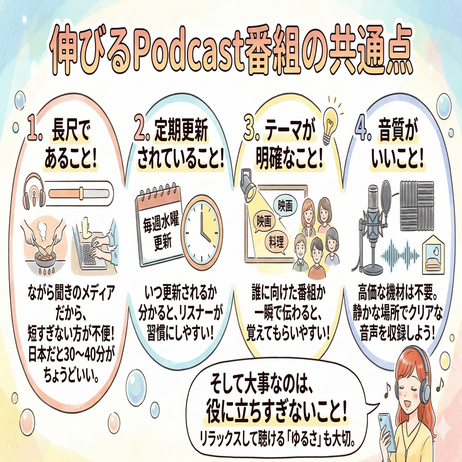 Podcastは、ながら聞きのメディアなので、短すぎると逆に不便なんです。