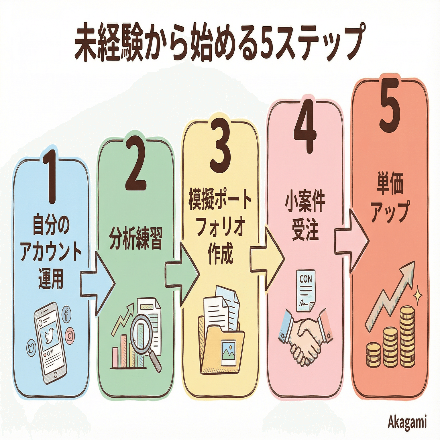 未経験からSNS運用代行を始めるには、段階的なステップを踏むことが重要です。