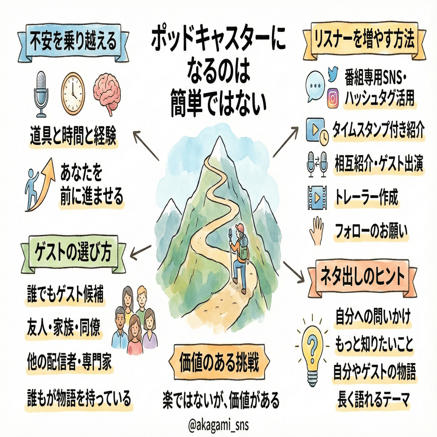 Podcastをしていて日々感じていることがあります。続けることの難しさ、伸び悩む不安、これで合っているのかという迷い。音声配信をしている人なら、一度は通る道だと思います。