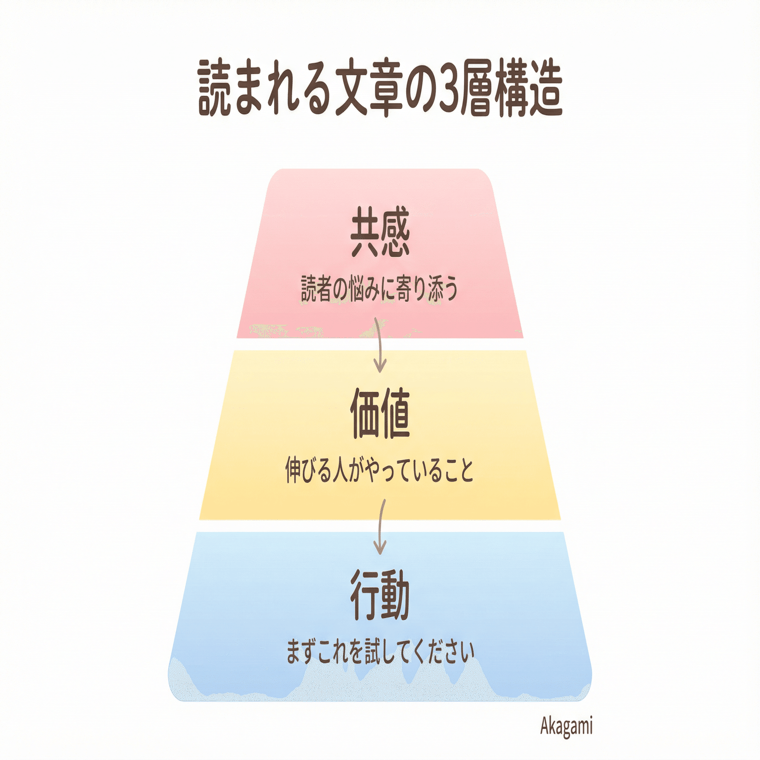 この順番を守るだけで、読者はあなたの文章を「自分にとって価値がある情報だ」と認識し、最後まで読んでくれるようになります。